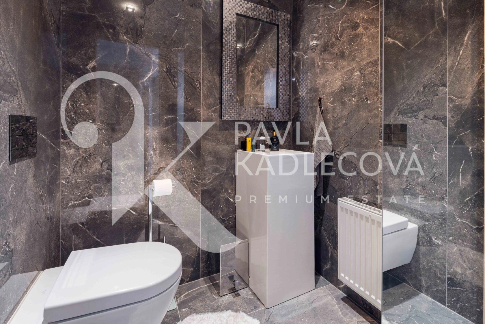 Součástí bytu je také další pokoj, ideální jako dětský pokoj, pracovna nebo pokoj pro hosty. Jednotka se prodává včetně kompletního vybavení, dvou garážových stání a sklepa.