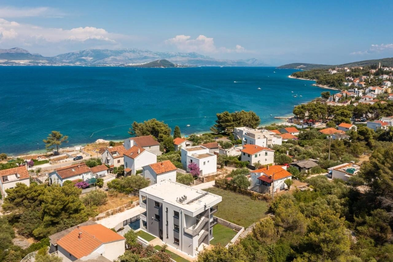 V prvním patře nově postaveného obytného domu o třech bytových jednotkách se nachází moderně a kompletně zařízený apartmán s krásným výhledem na moře.