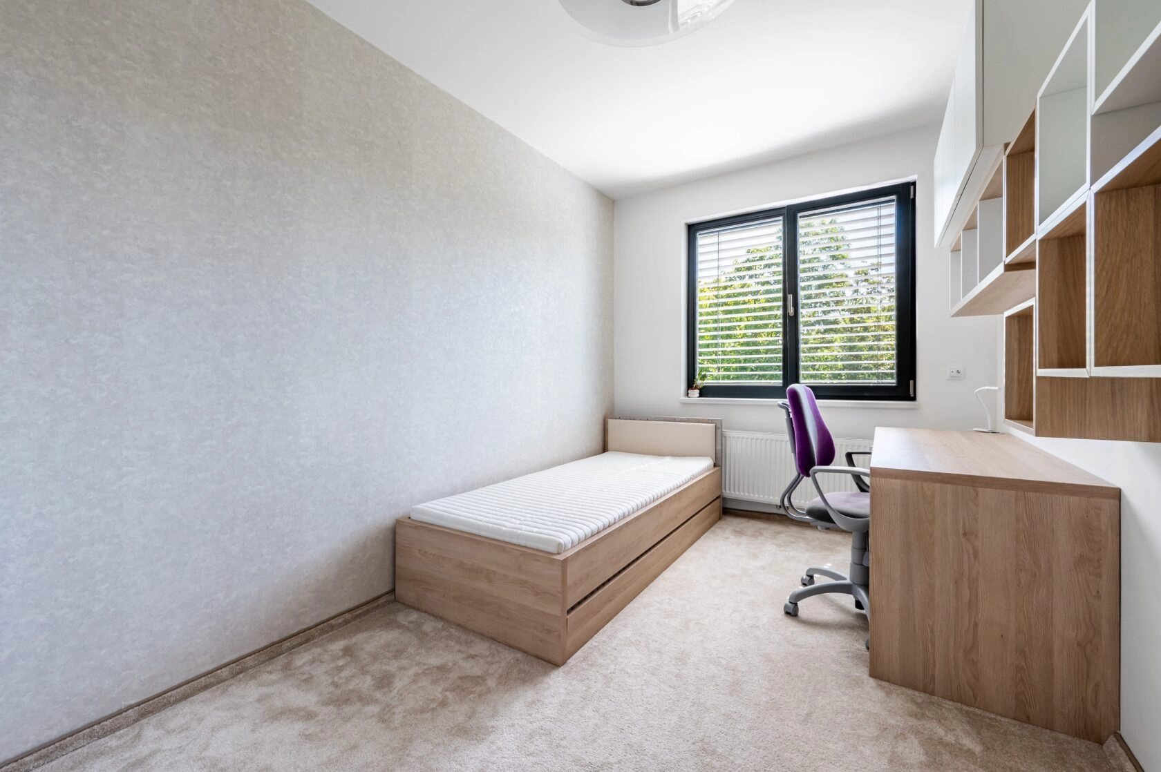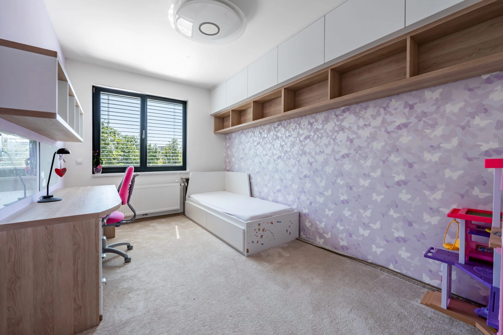 - Horní úroveň: chodba s úložnými prostory, hlavní ložnice s lodžií a vestavěnou skříní, další dvě ložnice s úložnými prostory, vybavená šatna, koupelna s vanou, sprchovým koutem a podlahovým topením.